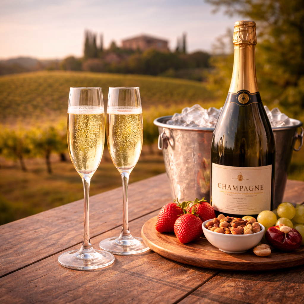 Champagne je vrchol elegancie, prestíže a vinárskeho umenia. Vzniká výhradne v oblasti Champagne tradičnou metódou druhotného kvasenia vo fľaši, ktorá mu dodáva mimoriadne jemné perlenie, komplexnú štruktúru a jedinečný charakter. Vyniká bohatým aromatickým profilom – od citrusov, zeleného jablka a bielej broskyne až po tóny briošky, mandlí, toastu a minerality.